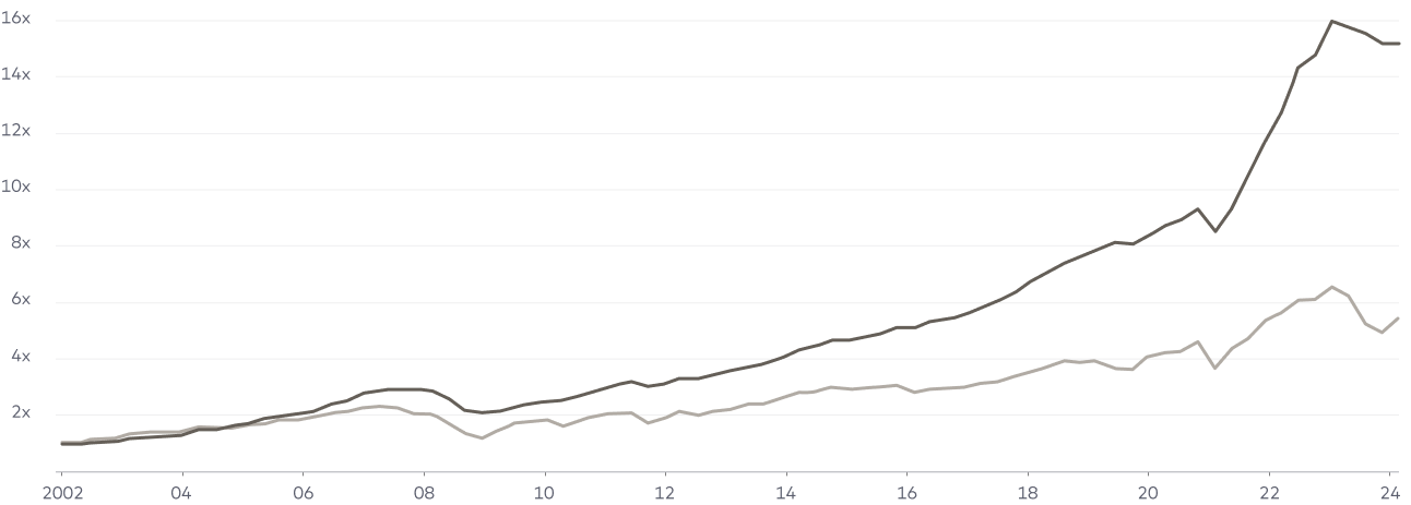 Die Aktienmärkte zeigten sich im vierten Quartal erneut volatiler als noch im ersten Halbjahr. Beflügelt von der Wiederwahl Donald Trumps und einer positiven Berichtssaison erreichten US-Aktien mehrere neue Allzeithochs. Bemerkenswert ist, dass die Performance im vierten Quartal fast ein Drittel der Jahresrendite von US-Aktien beisteuerte. Die hohen Bewertungen und die Konzentration auf einige wenige US-Titel bergen allerdings weiterhin Risiken. Dies zeigte sich deutlich, als der S&P 500 nach einem Statement des FED-Vorsitzenden Jerome Powell innerhalb eines Tages fast 3 Prozent verlor. Europäische Aktien konnten im vierten Quartal dagegen nicht überzeugen. Mit einem bescheidenen Gewinnwachstum fielen sie im globalen Vergleich zurück. Nach dieser enttäuschenden Entwicklung bieten niedrigere Zinsen, ein schwächerer Euro und attraktive Bewertungen zusätzliches Aufholpotenzial, denn europäische Aktien sind heute rund 40 Prozent niedriger bewertet als ihre US-Pendants – ein Abschlag in Rekordhöhe. Schwellenländeraktien blieben im vierten Quartal weitgehend unverändert, da die Wahl Trumps und die damit verbundene Aussicht auf Handelszölle sowie ein stärkerer US-Dollar Belastungen darstellen. Auf Jahressicht konnten sie dennoch eine deutlich bessere Performance als ihre europäischen Pendants erzielen.