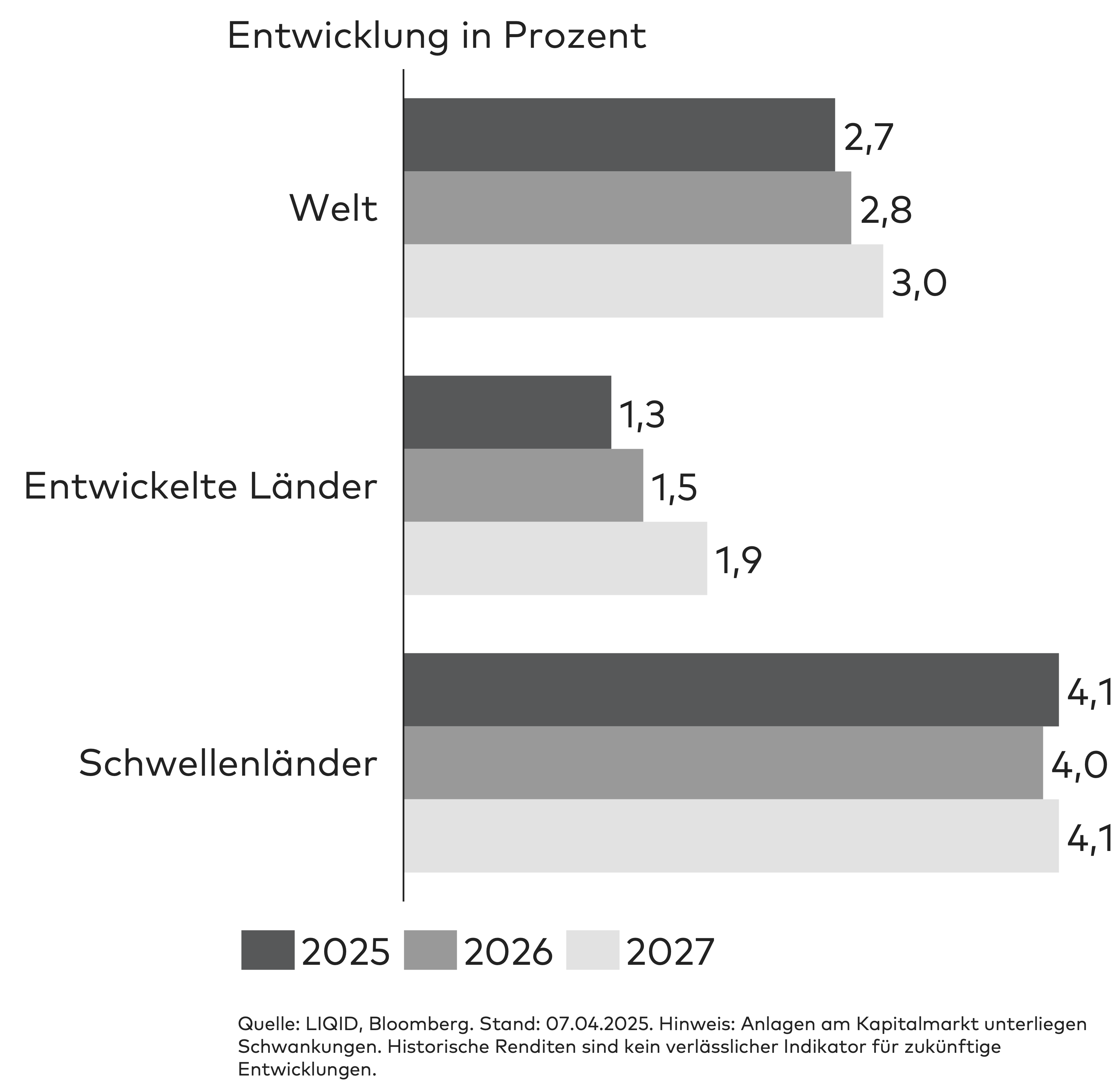 Die Weltwirtschaft zeigte sich im zweiten Quartal 2025 insgesamt resilient, allerdings mit regionalen Unterschieden. In Europa beflügelte die Aussicht auf eine expansive Fiskalpolitik und milliardenschwere Investitionen die Fantasie der Anleger. Auf der anderen Seite des Atlantiks erzeugten vor allem höhere Importzölle und eine unsichere Regierungspolitik Druck. Die Wachstumsprognosen für Europa wurden nach oben, jene für die USA nach unten revidiert. In China sorgten geplante Konjunkturpakete für positive Impulse, während in Japan und anderen asiatischen Märkten die Unsicherheiten über die US-Handelspolitik das Wachstum belasteten. Exportstarke Industrien wie der Maschinenbau und die Automobilbranche gerieten durch die handelspolitischen Spannungen erneut unter Druck.