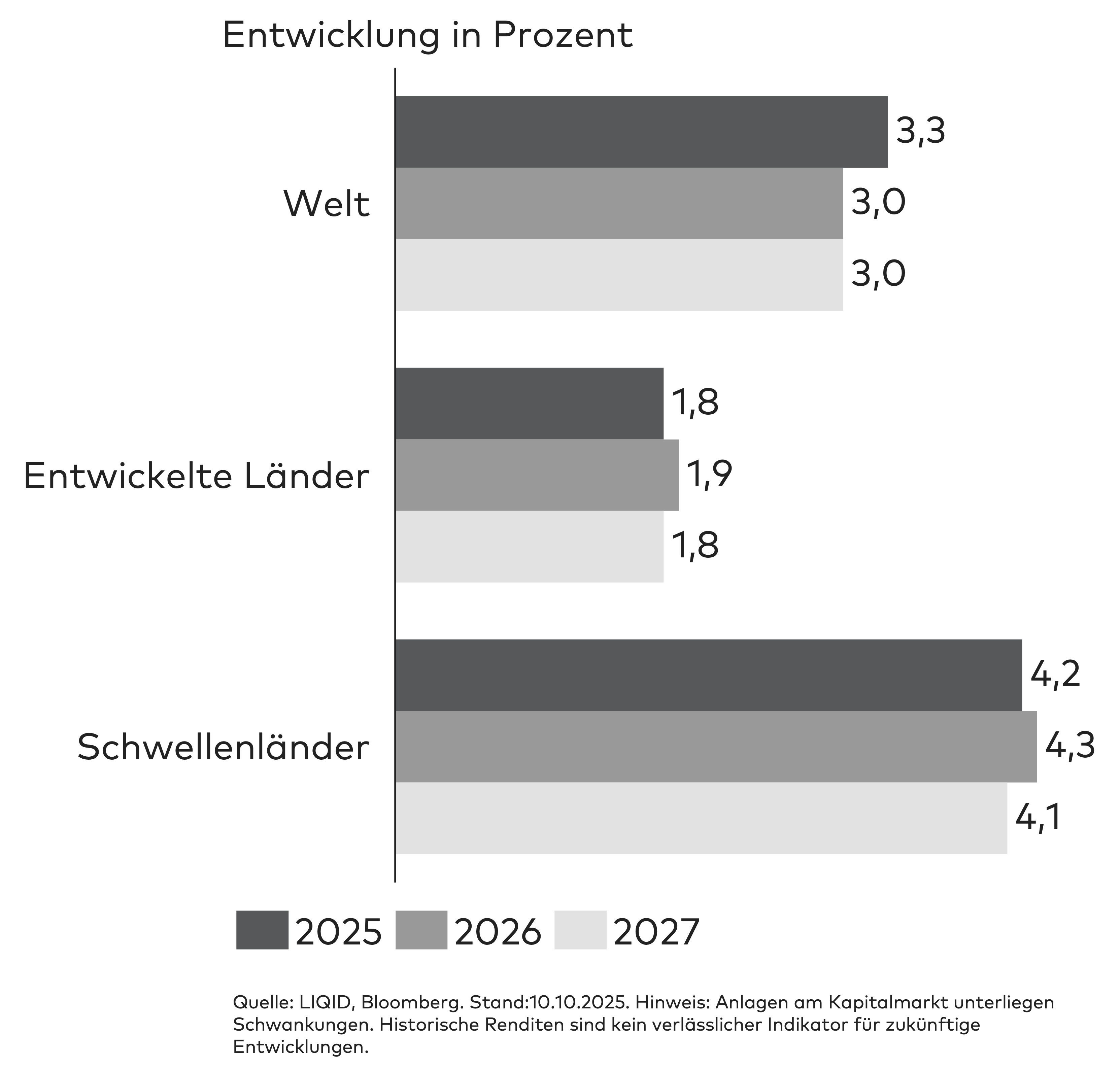 Insgesamt war das globale Wachstum zwar noch verhalten, zeigte jedoch erstmals seit Anfang 2024 eine breitere Basis – ein Signal, das auf eine mögliche zyklische Bodenbildung im Jahr 2026 hindeutet. Mehr zu den Trends, Chancen und Risiken für 2026 erfahren Sie in der Aufzeichnung unseres Jahresausblick-Webinars.