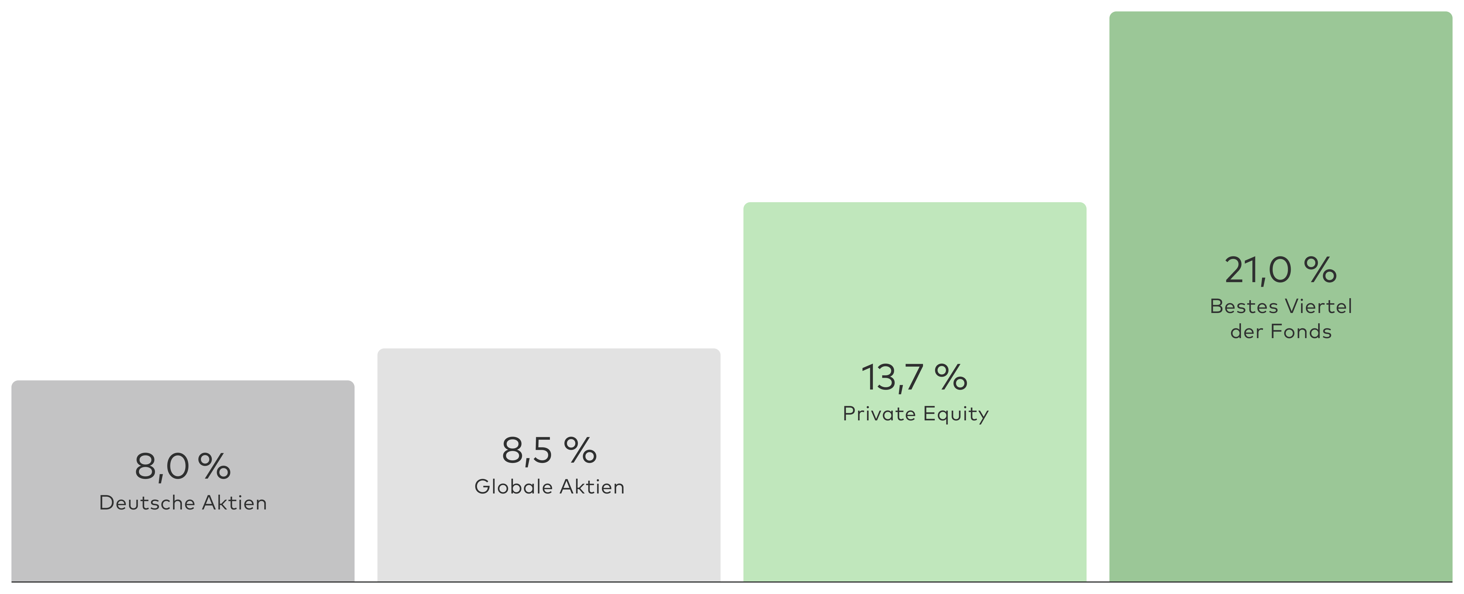 - Langfristigkeit: Typischerweise halten Private-Equity-Manager ihre Beteiligungen 5 bis 7 Jahre, zum Teil aber auch länger.
