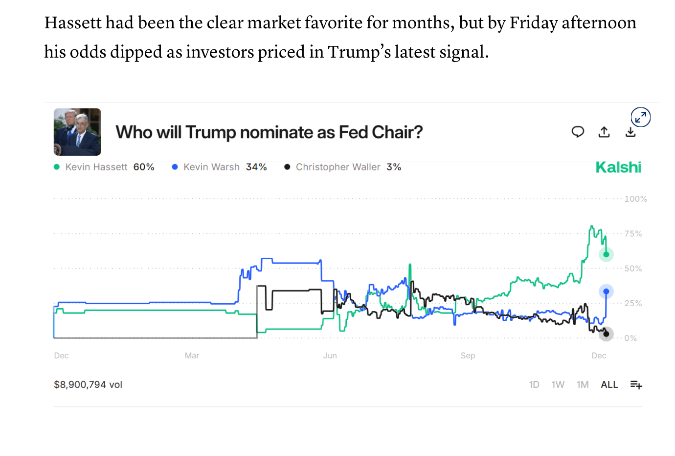 Ein interessanter Unterschied zu klassischen Wettanbietern liegt in der grundsätzlichen Herangehensweise der Prediction Markets: Sie agieren nicht als “Haus”, das die Quoten festlegt und als Gegenpart für jede Wette. Stattdessen leiten sich die Quoten direkt vom Setzverhalten der Nutzer ab. Längst zitieren deshalb seriöse Medien Outlets Wahrscheinlichkeiten von Kalshi und Co.